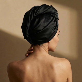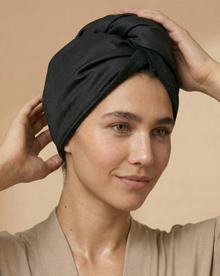 Unsere Duschhaube – Frottee Hair Wrap Premium verbindet zwei Funktionen in einem Produkt: Schützt dein Styling an „No-Wash“-Tagen und begleitet dich nach der Haarpflege als Frottee Hair Wrap.